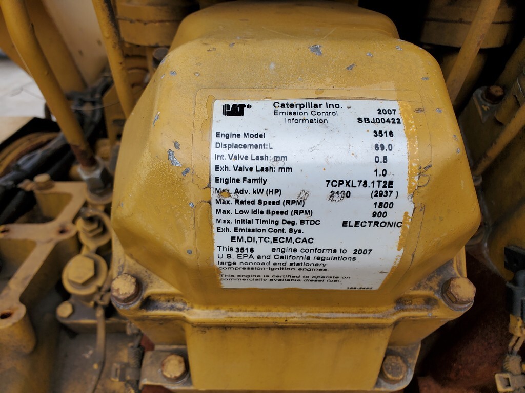 Good Rebuildable CAT 3516C Generator Set Core; 2007 Model - Tier 2; 2000kW Standby Rated; 480/277V; Open Skid Mount; Set Up for Remote Radiator Cooling; Internal Inspection Complete; Three Units In Stock