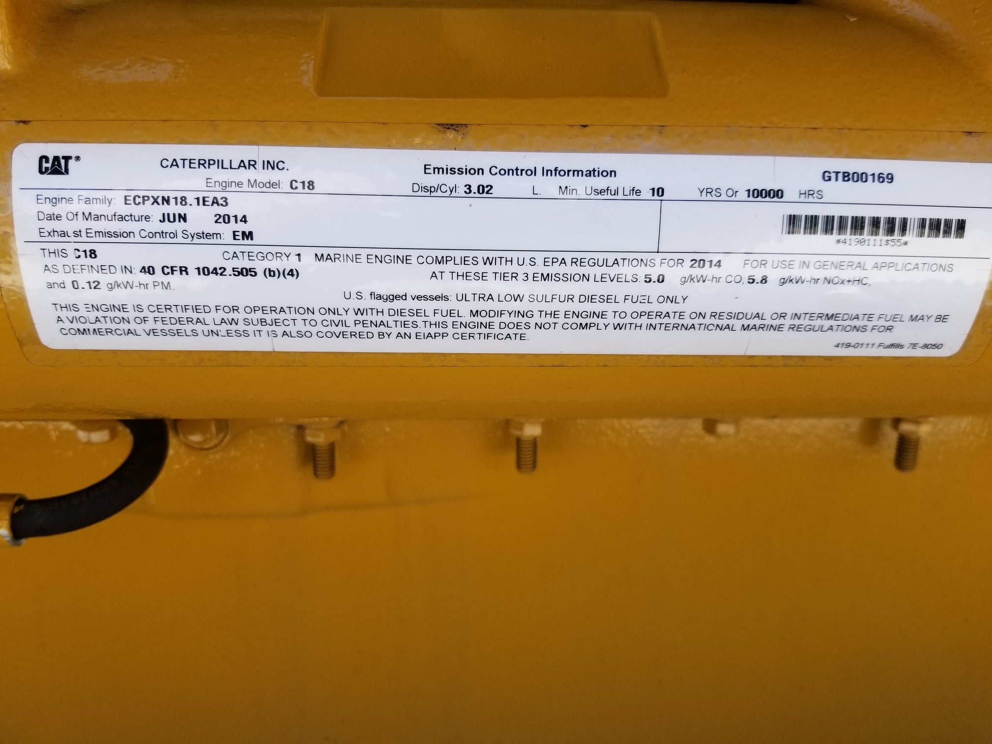 New CAT C18 Marine Auxiliary Engine
