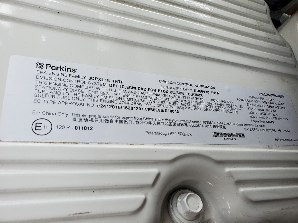Brand New Perkins E18TA Power Unit; 2019 Model - Full Factory Warranty; 630HP @ 2100RPM; Engine Mounted Radiator; Tier 4 Final Emissions; SAE 1 Flywheel Housing; Transmission Oil Cooler; 4 Units Available!
