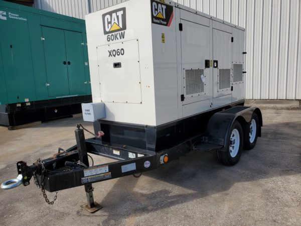 Good Used CAT XQ60 Generator Set; 2011 Model - 15,004 Hours Since New; 60kW Standby Rated; Multi-Voltage Rental Style; Trailer Mounted; Load Tested and Ready to Ship!