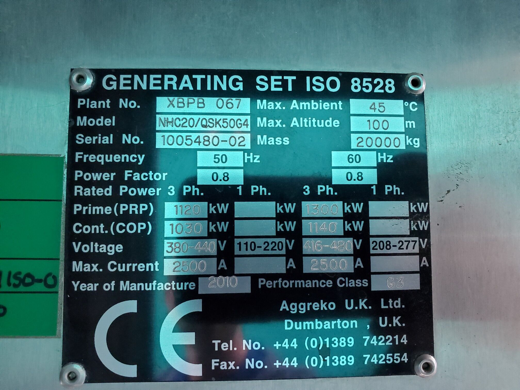 Used Cummins QSK50-G4 Generator Set