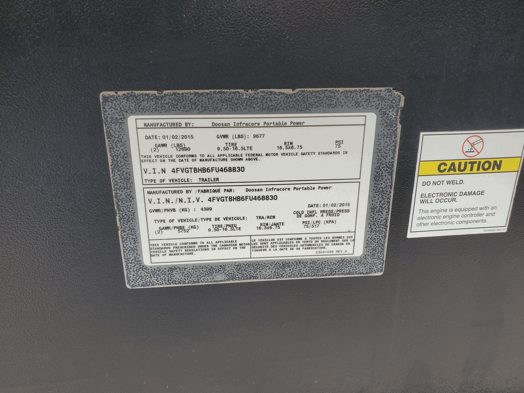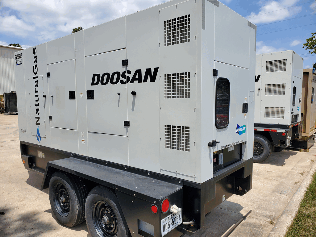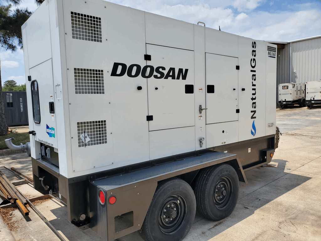 PHOTOS COMING SOON! Good Used Doosan NG160 Generator Set; 2015 Model - 2961 Hours Since New; 134kW Prime Power Rated; Sound Enclosed; Trailer Mounted; Serviced and Load Tested!
