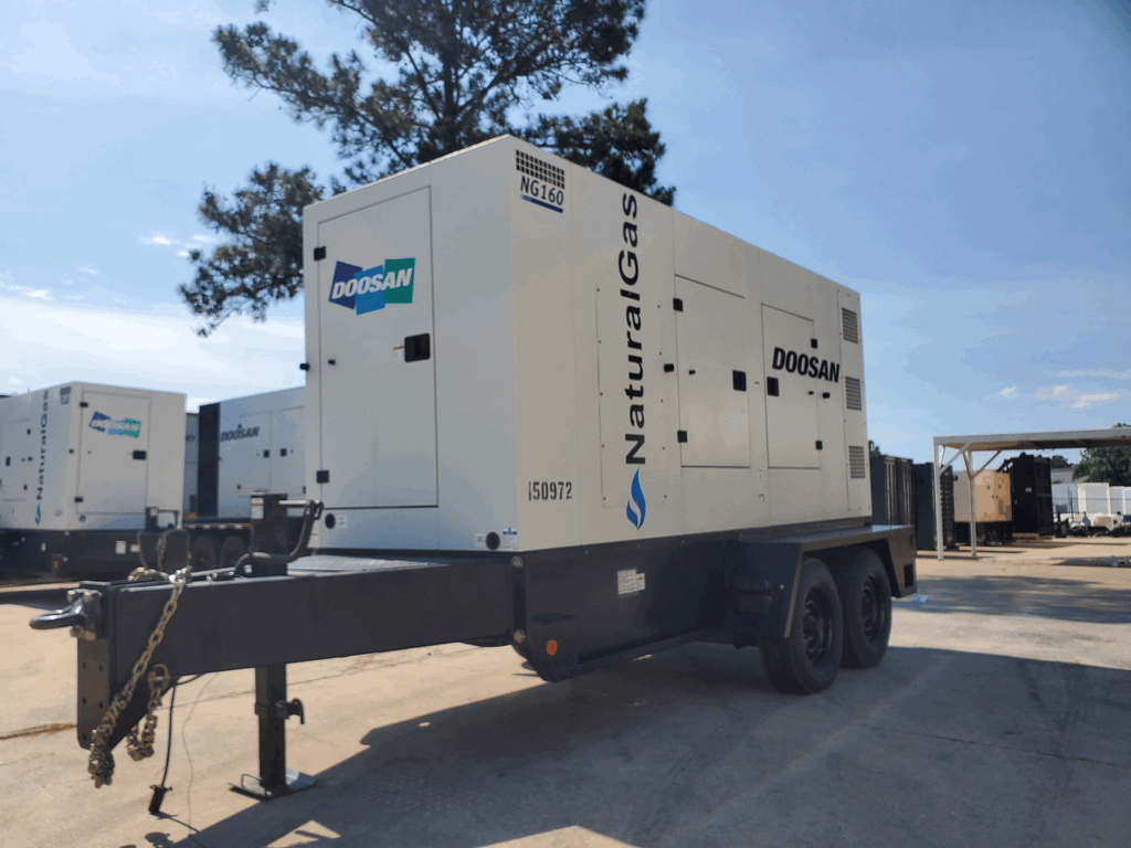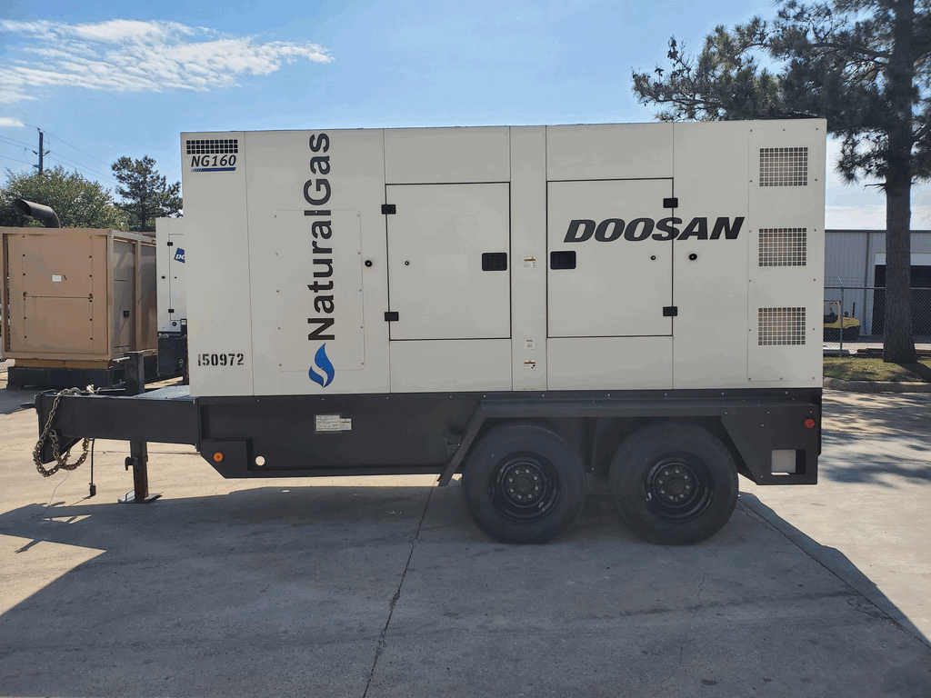PHOTOS COMING SOON! Good Used Doosan NG160 Generator Set; 2015 Model - 3041 Hours Since New; 134kW Prime Power Rated; Sound Enclosed; Trailer Mounted; Serviced and Load Tested!