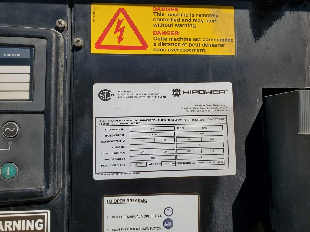 Used HiPower HRJW145 Generator Set