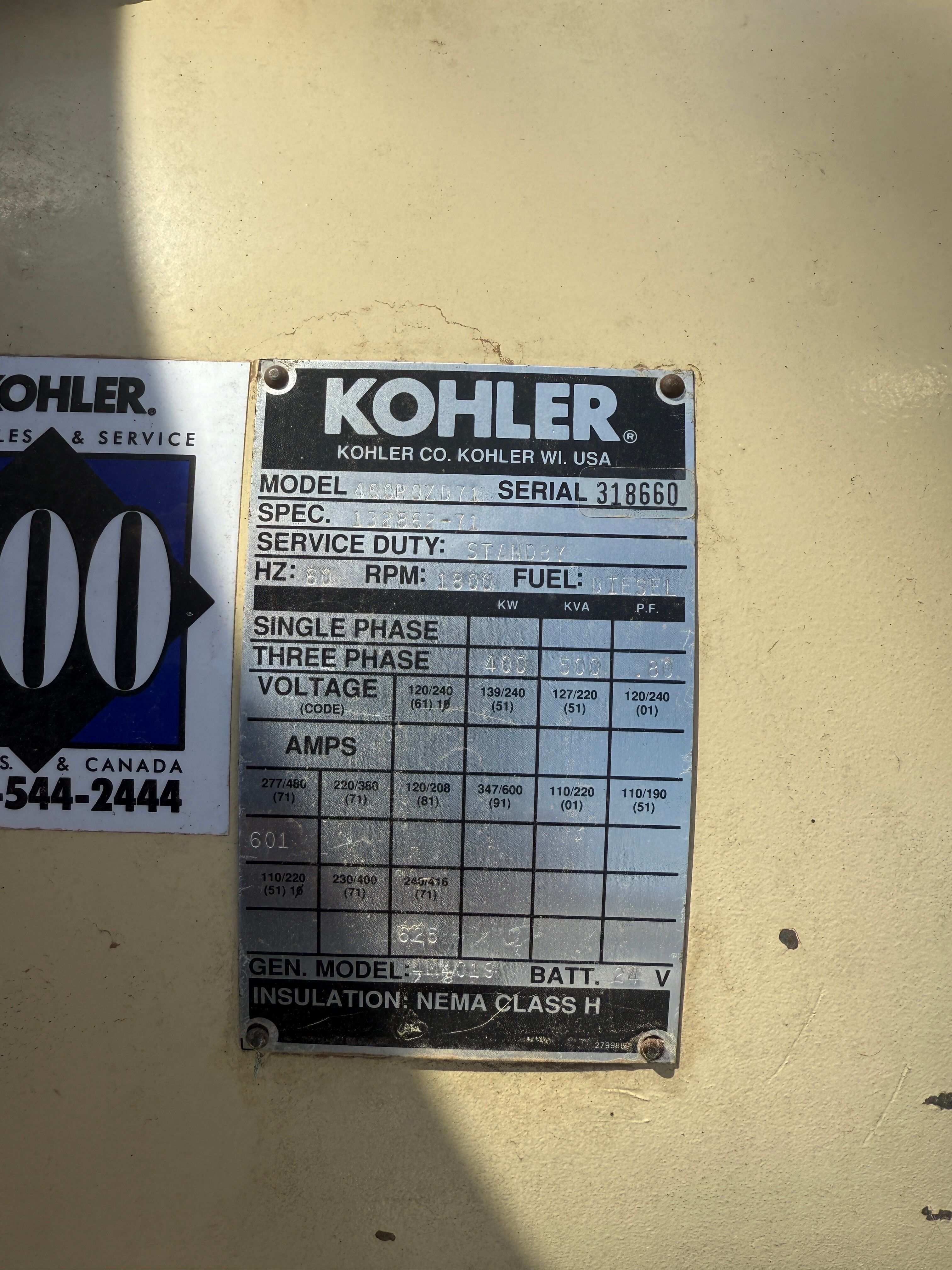 Used Kohler 400R0ZD71 Generator Set
