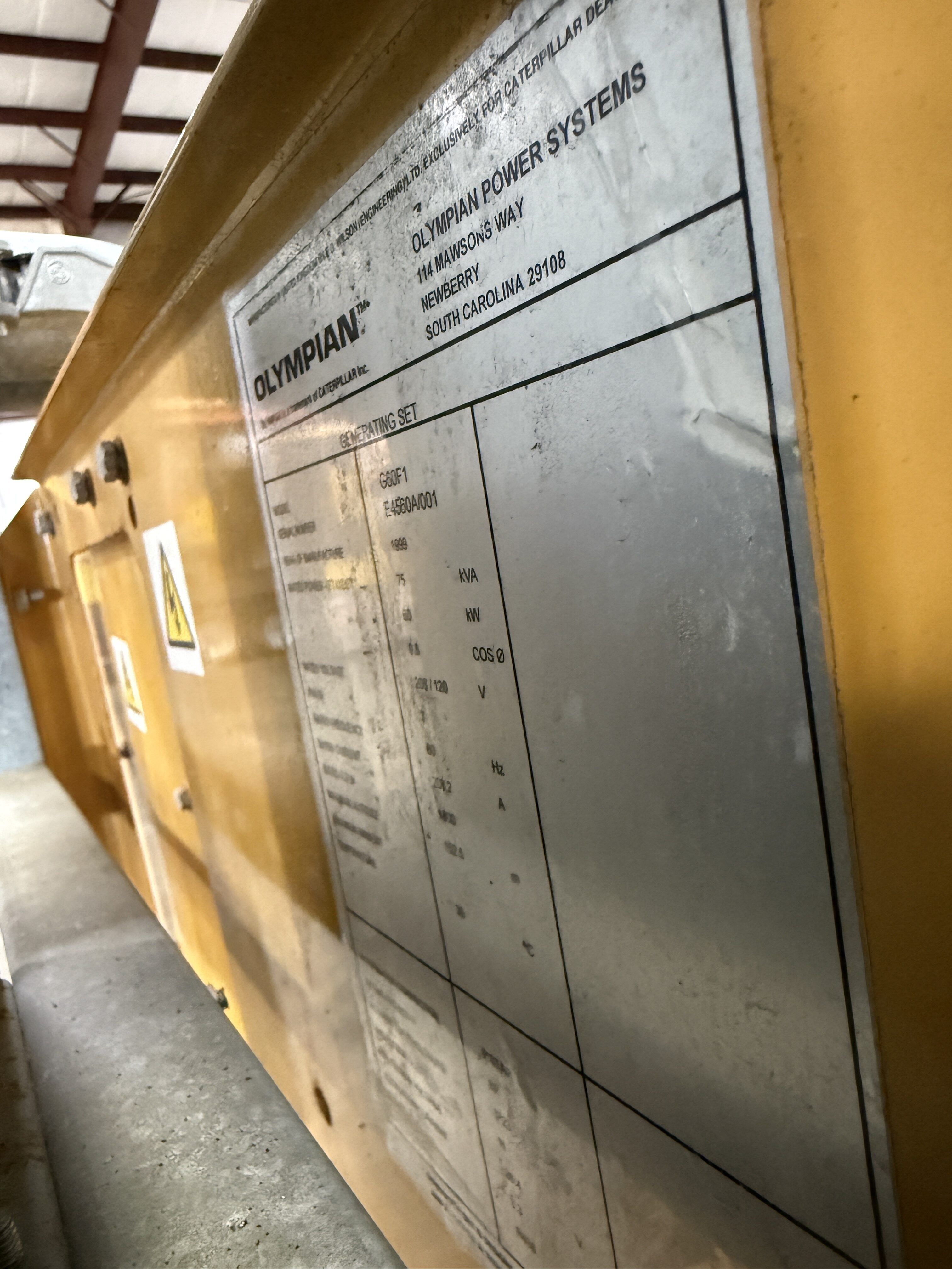 Used Olympian G60F1 Generator Set; 1706 Hours Since New; 60kW Power Rating; 120/208V, Open Set
